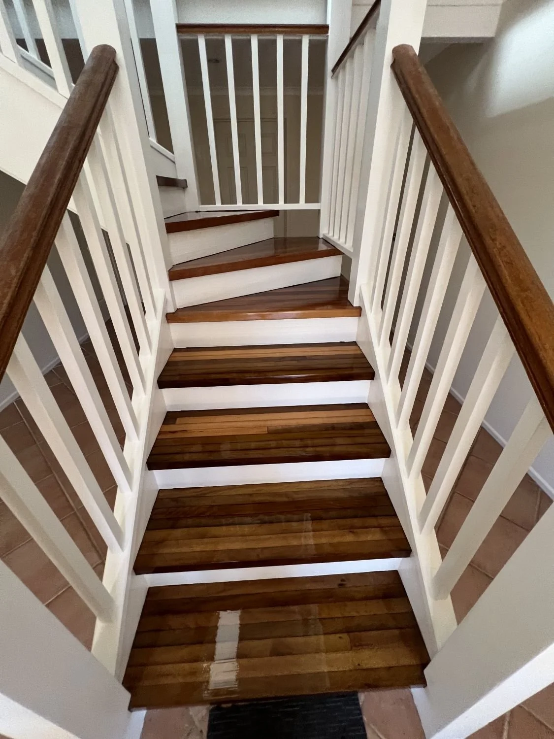 Refresh tired timber stairs with a flawless sanded finish and polished look that adds elegance, safety, and long-lasting appeal.